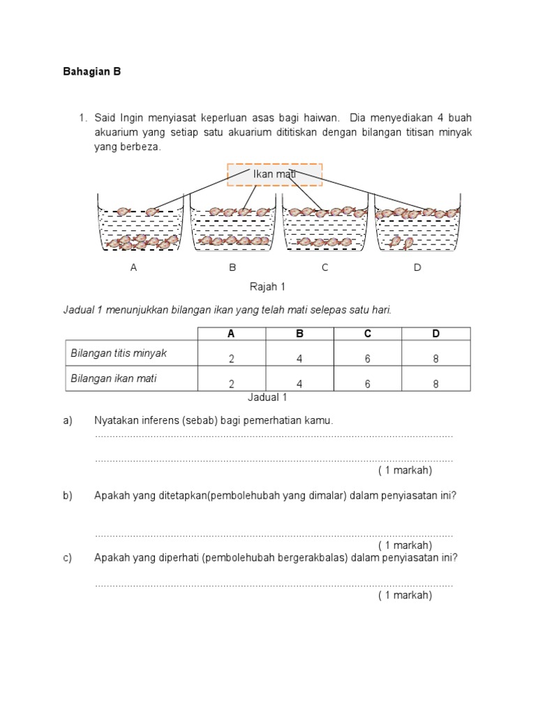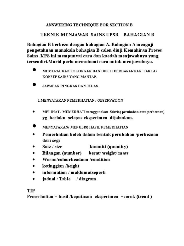 Contoh Soalan Sains Upsr Bahagian B